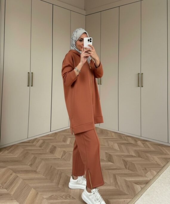 Premium Fermuarlı Basic İkili Takım TK2962 – Acı Kahve
