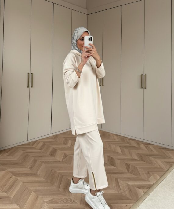 Premium Fermuarlı Basic İkili Takım TK2962 – Beyaz İnci