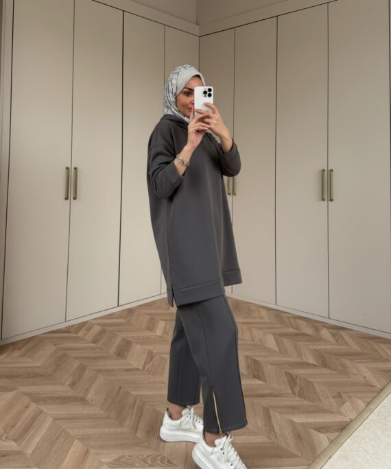 Premium Fermuar Detay Basic İkili Takım TK100430 – Füme