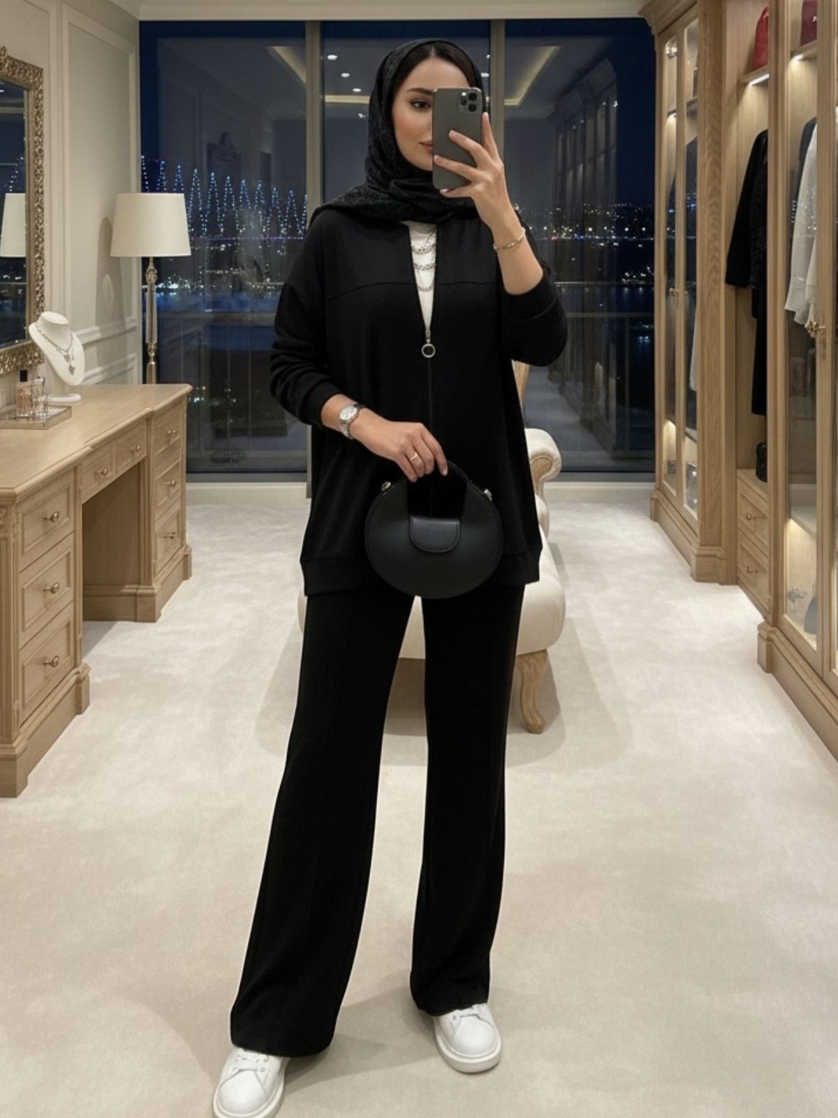 Hem günlük şıklıkta hem özel davetlerde rahatlıkla tercih edilebilecek bu takım, modern zarafeti geleneksel dokunuşlarla buluşturuyor.