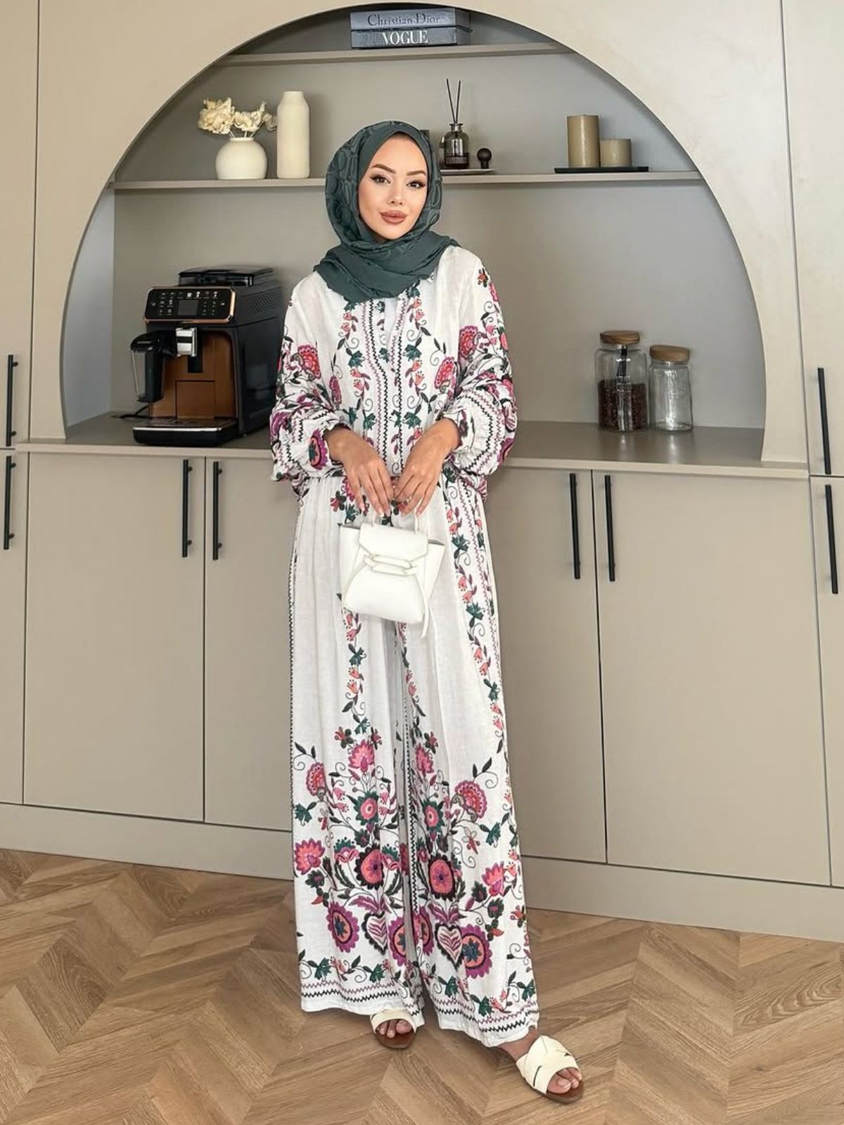 Doğal modal kumaş dokusunun hafifliğiyle buluşan Flora Serenade İkili Takım, yazın ferah ruhunu gardırobunuza taşıyor. Gri zemin üzerine işlenmiş canlı pembe ve yeşil çiçek desenleri, romantik ve bohem bir görünüm sunarken, rahat kesimiyle gün boyu konfor sağlıyor. Hem şehirde hem tatil kombinlerinde kolayca uyum sağlayan bu takım, şıklık ve rahatlığı bir arada isteyenler için ideal.