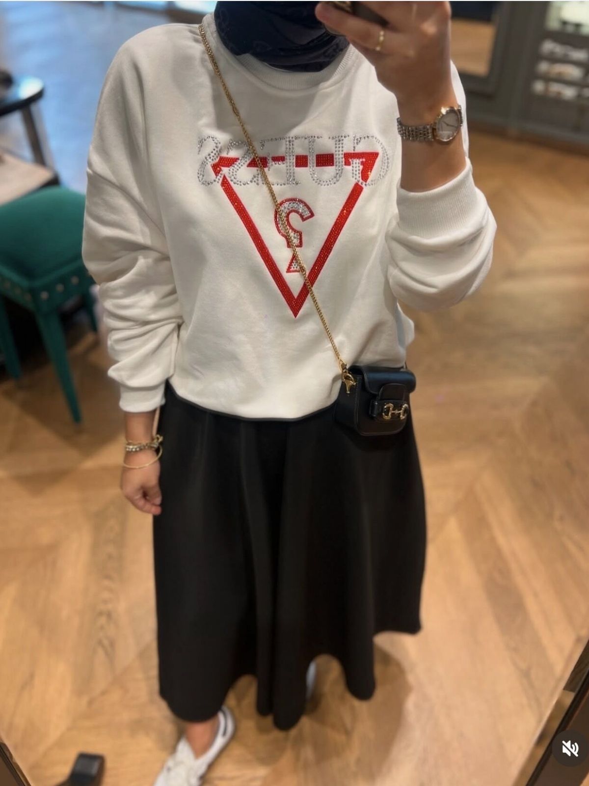 Gündelik şıklığın anahtarı! 2 iplik pamuklu kumaşı sayesinde gün boyu konforlu ve nefes alan bir deneyim yaşayın. Önündeki ışıltılı taş detaylı üçgen logo ile sade ve iddialı bir duruş sergileyin. İster etek ister pantolonla kombinleyin, stiliniz konuşulsun.
