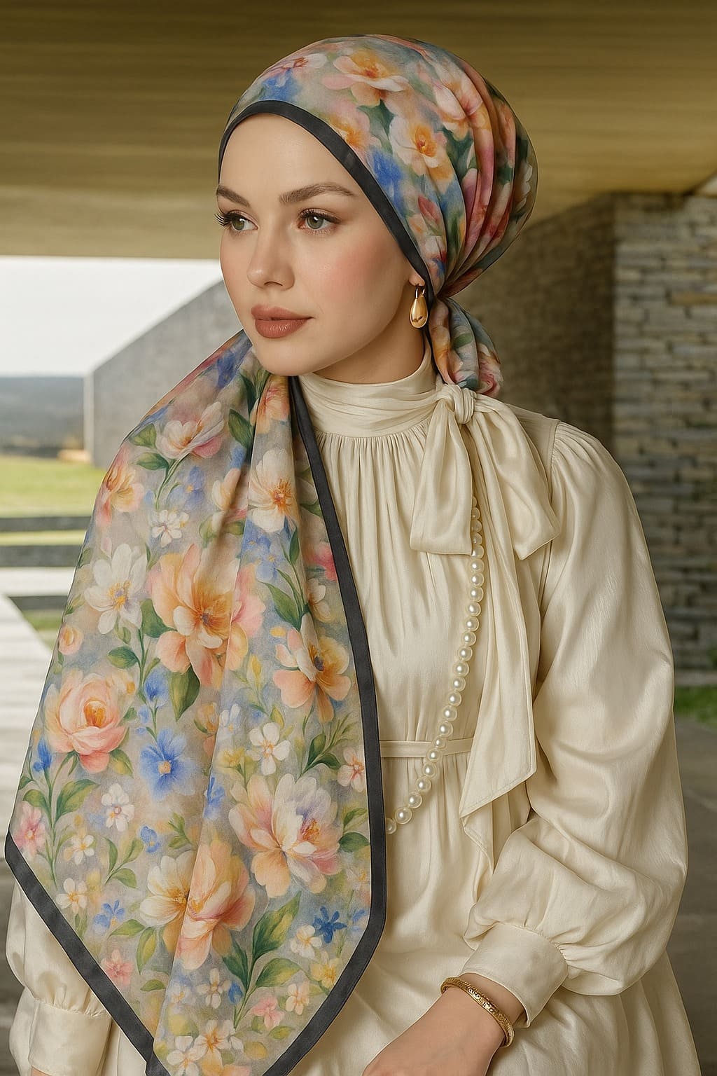 Gül Zarafeti Şal ile stilinize zamansız bir zarafet ve romantik bir çiçek esintisi katın.