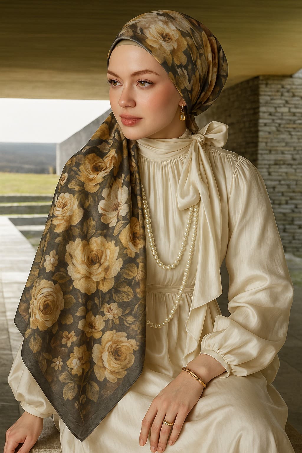 Gül Zarafeti Şal ile stilinize zamansız bir zarafet ve romantik bir çiçek esintisi katın.
