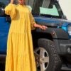 Doğal ketenin ferahlatıcı dokusunu güneşin altın ışıltısıyla buluşturduk! Hafif, nefes alabilen ve kendine özgü zarif kırışıklıklarıyla öne çıkan %100 keten kumaş, sıcak günlerde bile serinlik ve konfor sağlar. Üç katlı volan eteği ve rahat balon kollarıyla özgür bir siluet sunan oversize kesim, hem şehir gezilerinde hem tatil kaçamaklarında stilinizi tamamlar.