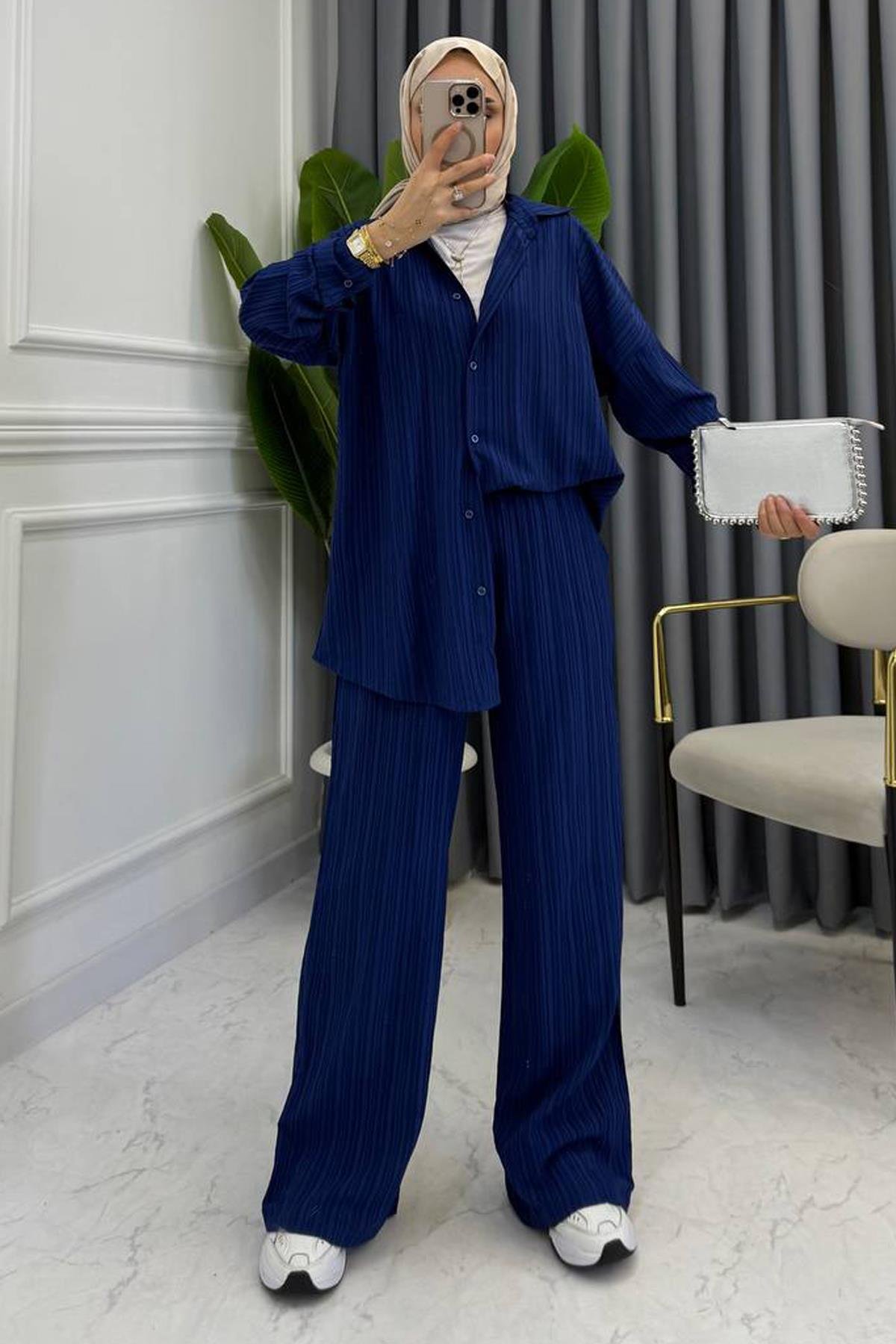 Be the first to review “Nora Düğmeli Keten Takım TK10046 – Lacivert”