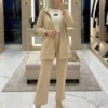 Hem günlük şıklıkta hem özel davetlerde rahatlıkla tercih edilebilecek bu takım, modern zarafeti geleneksel dokunuşlarla buluşturuyor.