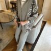 Hem günlük şıklıkta hem özel davetlerde rahatlıkla tercih edilebilecek bu takım, modern zarafeti geleneksel dokunuşlarla buluşturuyor.