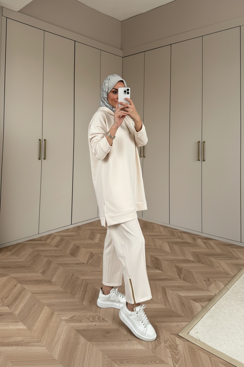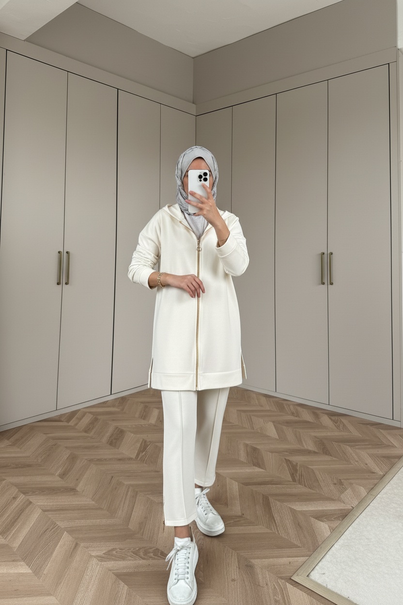 Premium Fermuar Detay Basic İkili Takım TK100430 – Beyaz