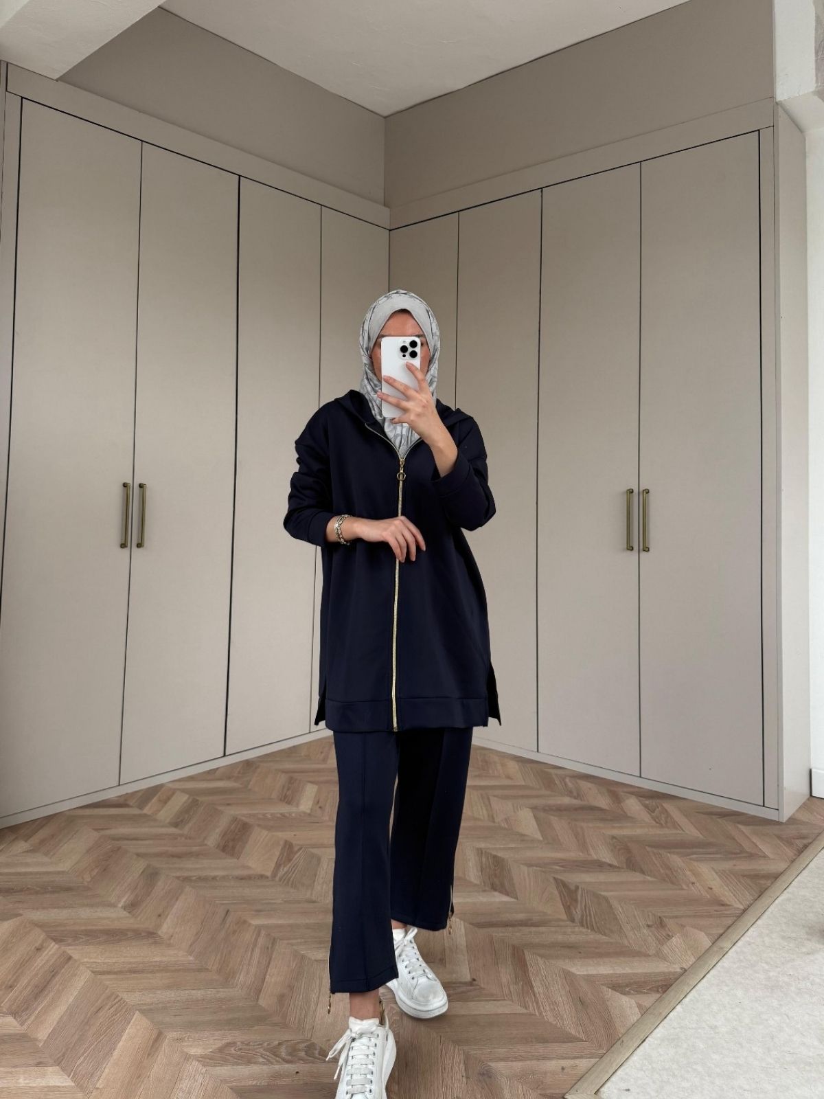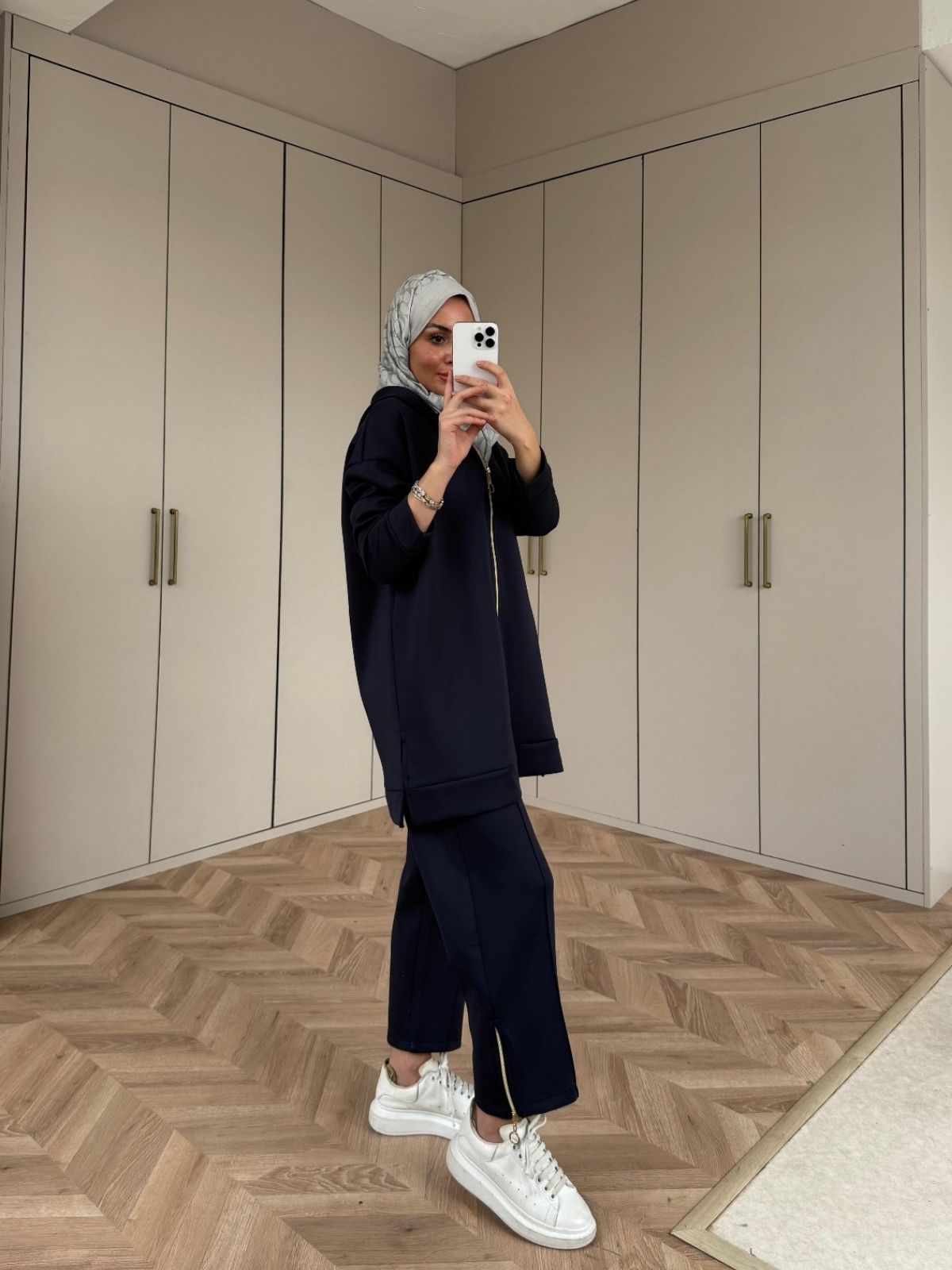 Premium Fermuar Detay Basic İkili Takım TK100430 – Siyah