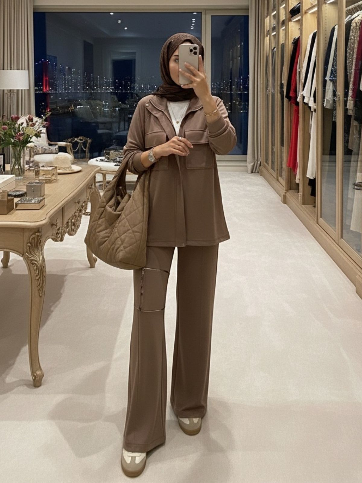 Hem günlük şıklıkta hem özel davetlerde rahatlıkla tercih edilebilecek bu takım, modern zarafeti geleneksel dokunuşlarla buluşturuyor.