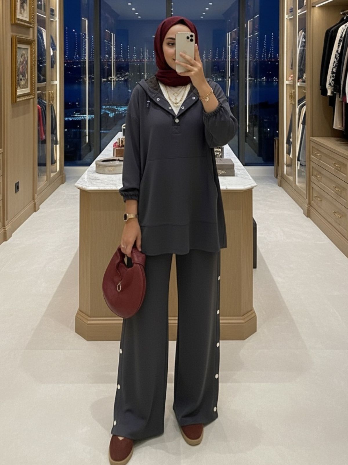 Hem günlük şıklıkta hem özel davetlerde rahatlıkla tercih edilebilecek bu takım, modern zarafeti geleneksel dokunuşlarla buluşturuyor.