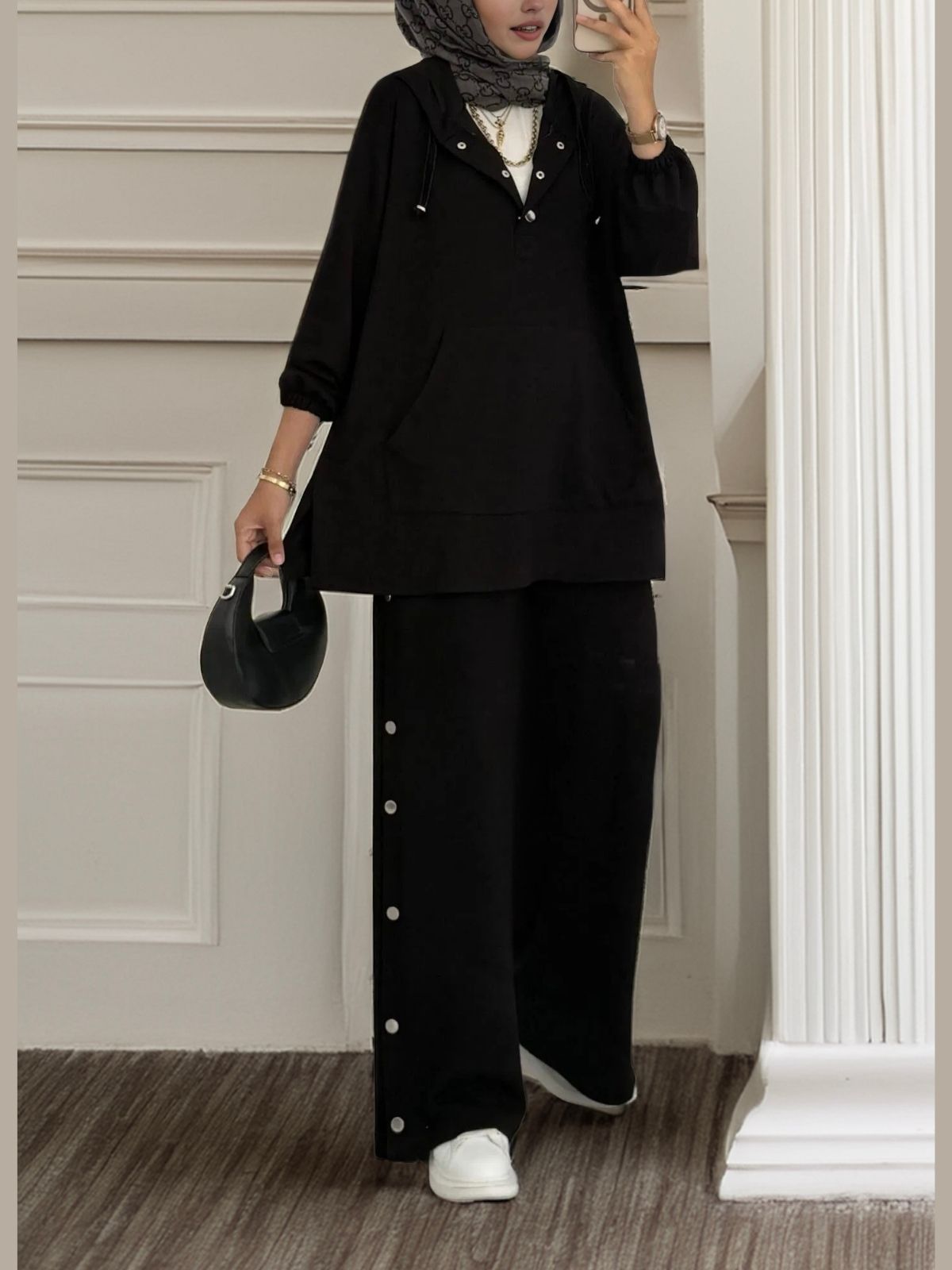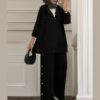 Hem günlük şıklıkta hem özel davetlerde rahatlıkla tercih edilebilecek bu takım, modern zarafeti geleneksel dokunuşlarla buluşturuyor.