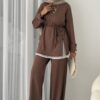 Hem günlük şıklıkta hem özel davetlerde rahatlıkla tercih edilebilecek bu takım, modern zarafeti geleneksel dokunuşlarla buluşturuyor.