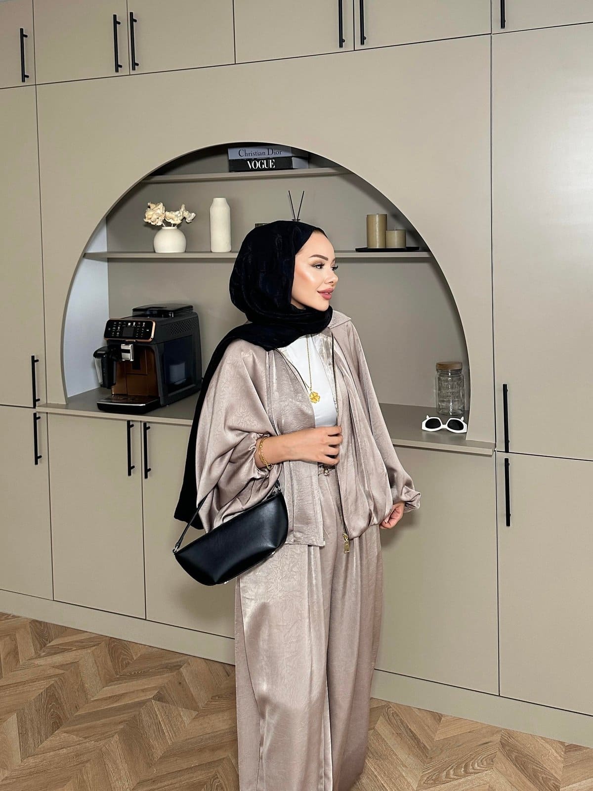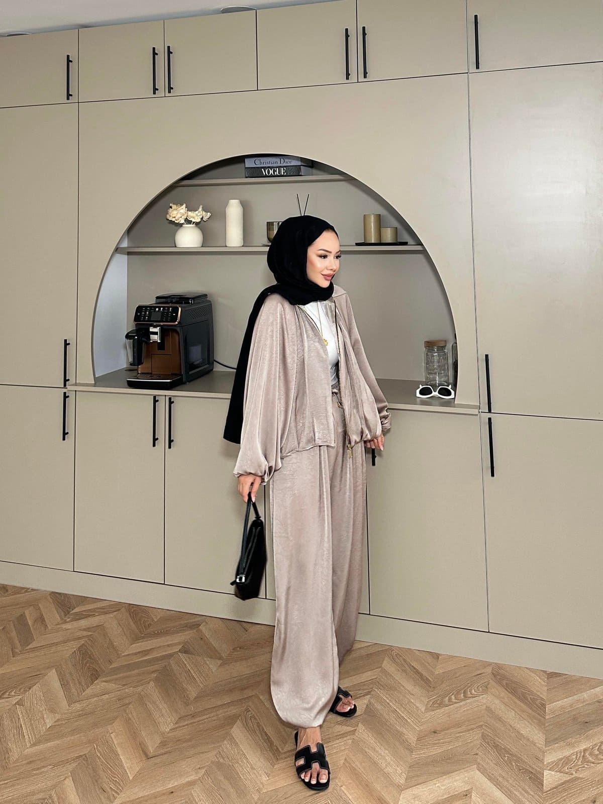 Be the first to review “Saten Bomber Ceket Pantolon İkili Takım TK100238 – Vizon”