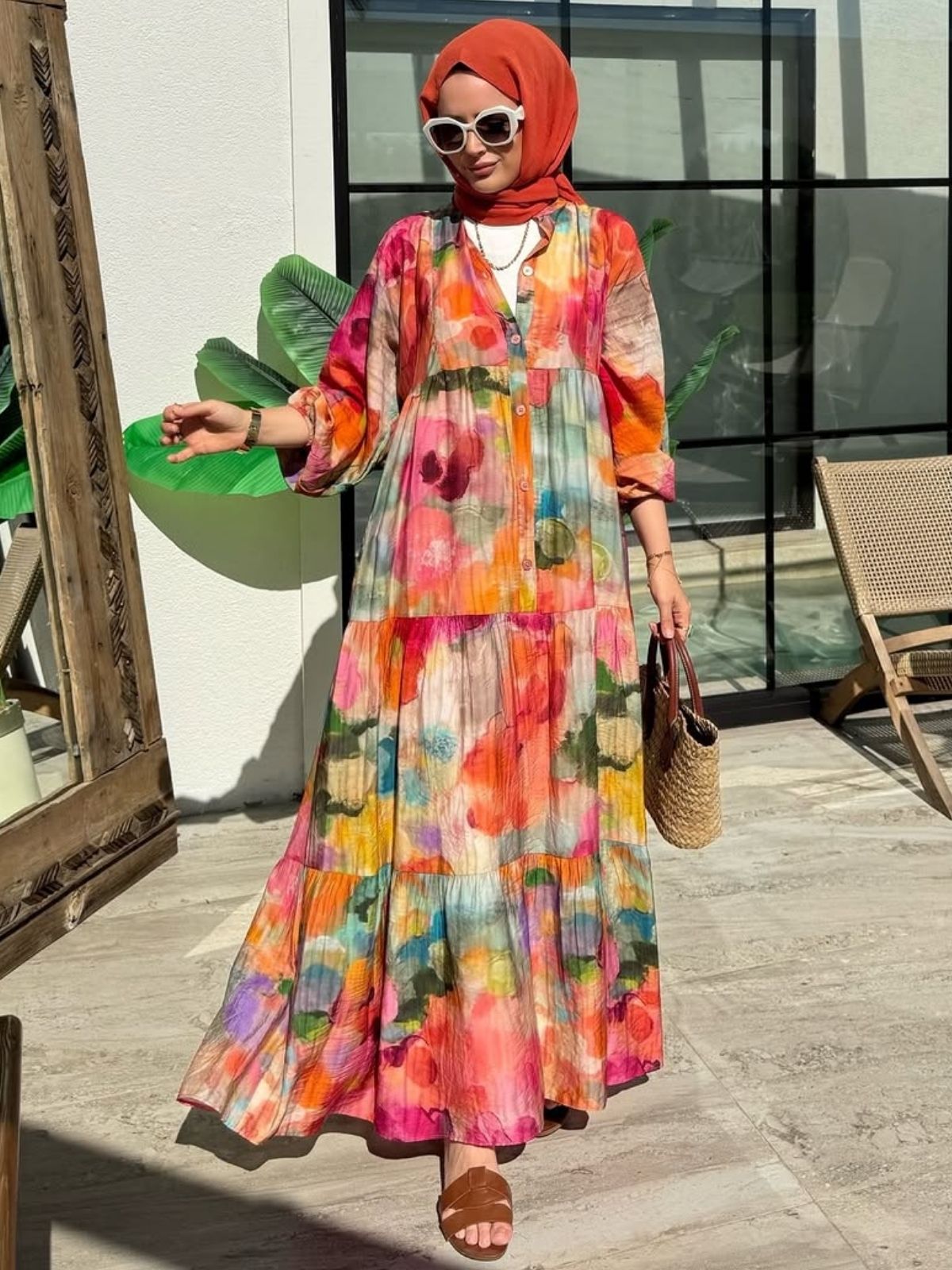 Yaz mevsimi için özel üretilmiş doğal pamuk kumaştan tasarlanan bu elbise, hafifliği ve nefes alabilir yapısıyla gün boyu konfor sunar.