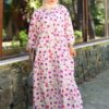 Beyaz zemin üzerine pembe, fuşya ve mor çiçek desenleriyle tasarlanan bu elbise, baharın taze enerjisini yansıtan romantik bir görünüme sahip. Hafif kumaşı ve dökümlü kesimiyle yaz aylarında serinlik sunarken, zarif desenleriyle günlük kullanımdan özel davetlere kadar çok yönlü bir kullanım sağlar. Nötr şallar ve sade aksesuarlarla kombinlendiğinde zarif bir stil oluşturur.