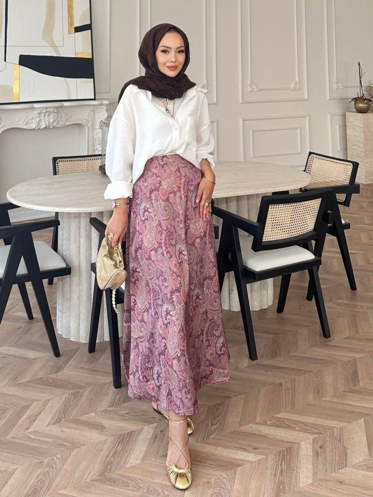 Desenli tasarımı ve dökümlü yapısıyla hem günlük hem de özel gün kombinlerine uyum sağlayan uzun etek modeli. Hafif ve rahat kumaşı sayesinde gün boyu konfor sunar. Yüksek bel kesimi ve akışkan formu ile şık bir siluet oluşturur, farklı üstlerle kolayca kombinlenebilir.