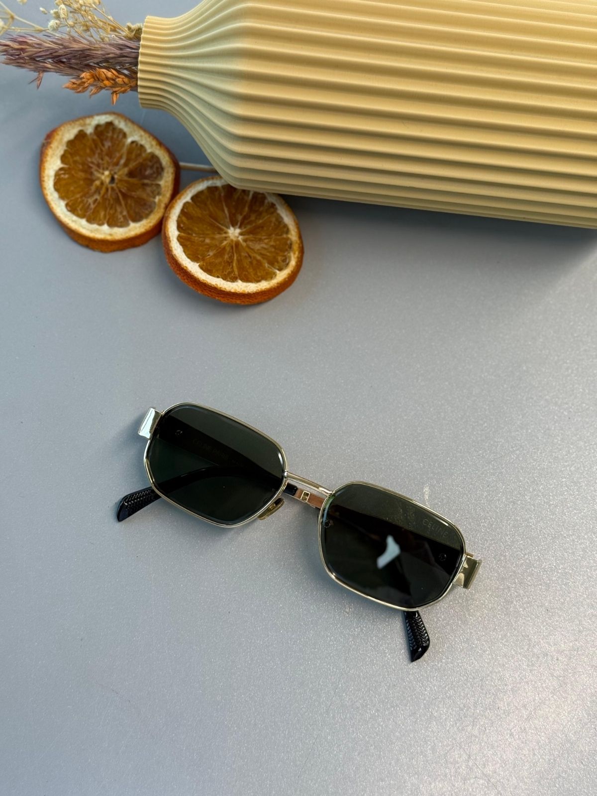 Celine’in ikonik Triomphe halkasıyla süslenmiş metal kare silueti, altın kaplama çerçeve ve zengin tortoise desenli asetat saplarıyla buluşuyor. Üstün UV400 korumalı yeşil lensler, hem gözlerinizi zararlı ışınlardan korur hem de doğal renk algısını bozmadan yansımaları azaltır. İnce profilli metal çerçeve, güçlü kare formuyla modern ve lüks bir duruş sunarken, entegre silikon burun pedleri gün boyu konforlu ve kaymaz bir oturuş sağlar.