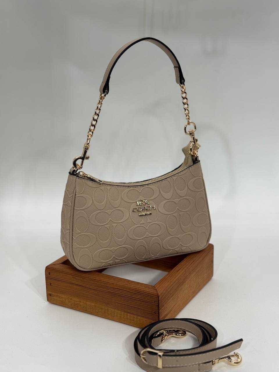 Coach Gofraj baskılı kilitli büzgülü bej