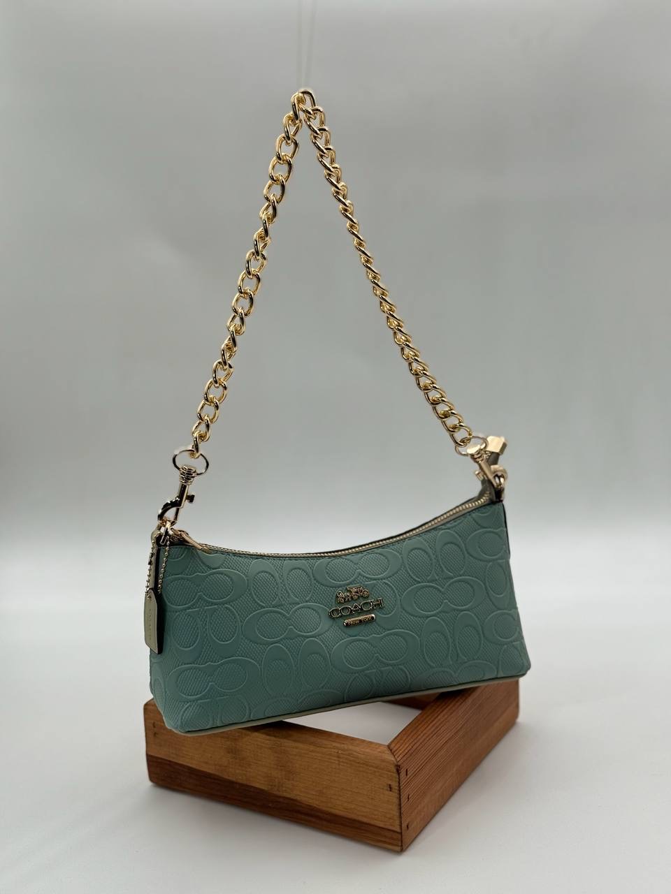 Coach Gofraj baskı zincirli baget mint yeşili çanta