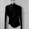 • Yaka: Yarım balıkçı (mock-neck) yaka detayı, bluzun modern ve şık duruşunu pekiştirir.
