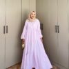 Pamuklu müslinin nefes alan hafifliği ile ketenin doğal dokusunu bir araya getiren pamuk şekeri , yaz günlerine layık tatlı bir serinlik sunar. Hareket ettikçe dalgalanarak güneş ışığını elbisenizin her kıvrımında yakalar.