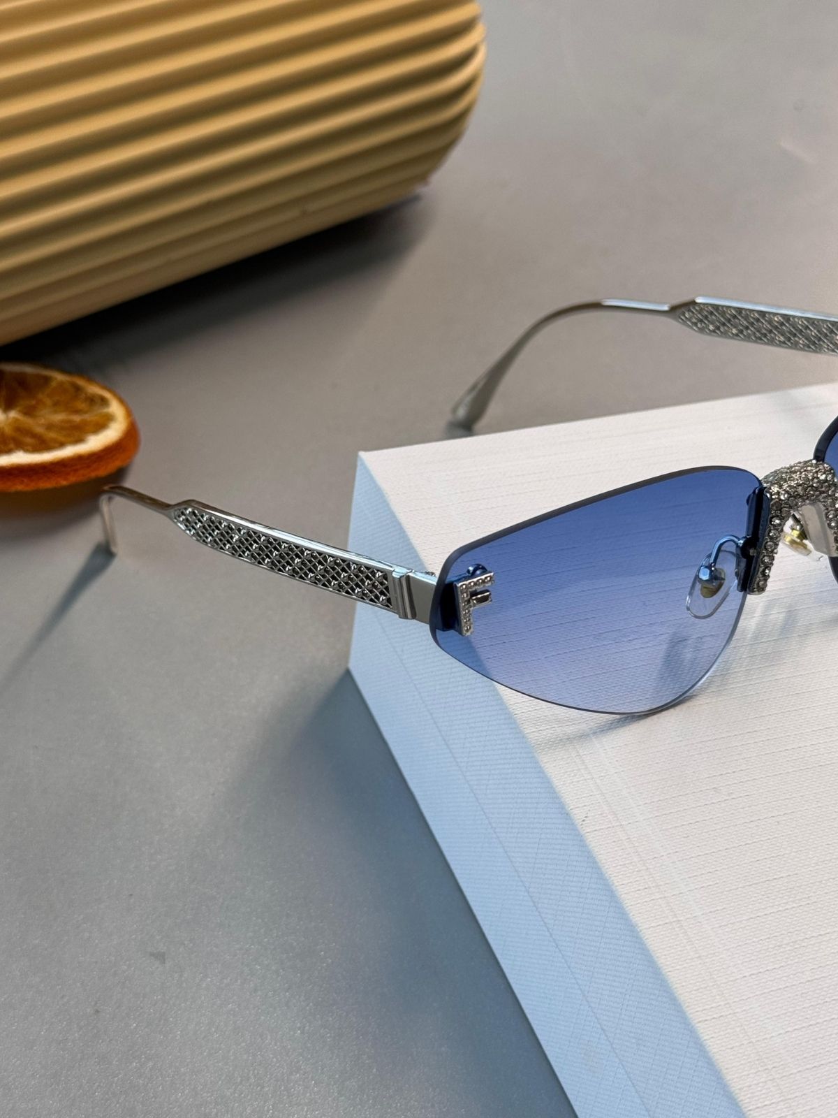 Lens ve çerçeve kenarlarında yer alan parıltılı taş süslemeler, güneş ışığında ışıldayarak lüks algısını zirveye taşır.