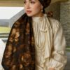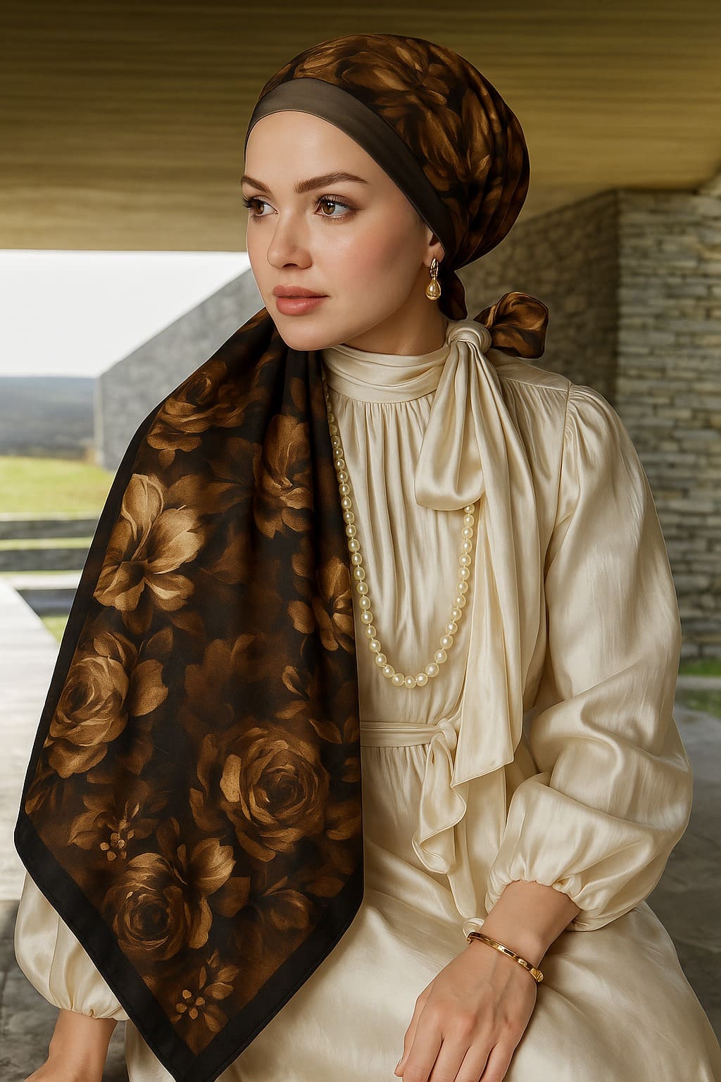 Gül Zarafeti Desen Pamuk İpek Şal-Karamel