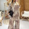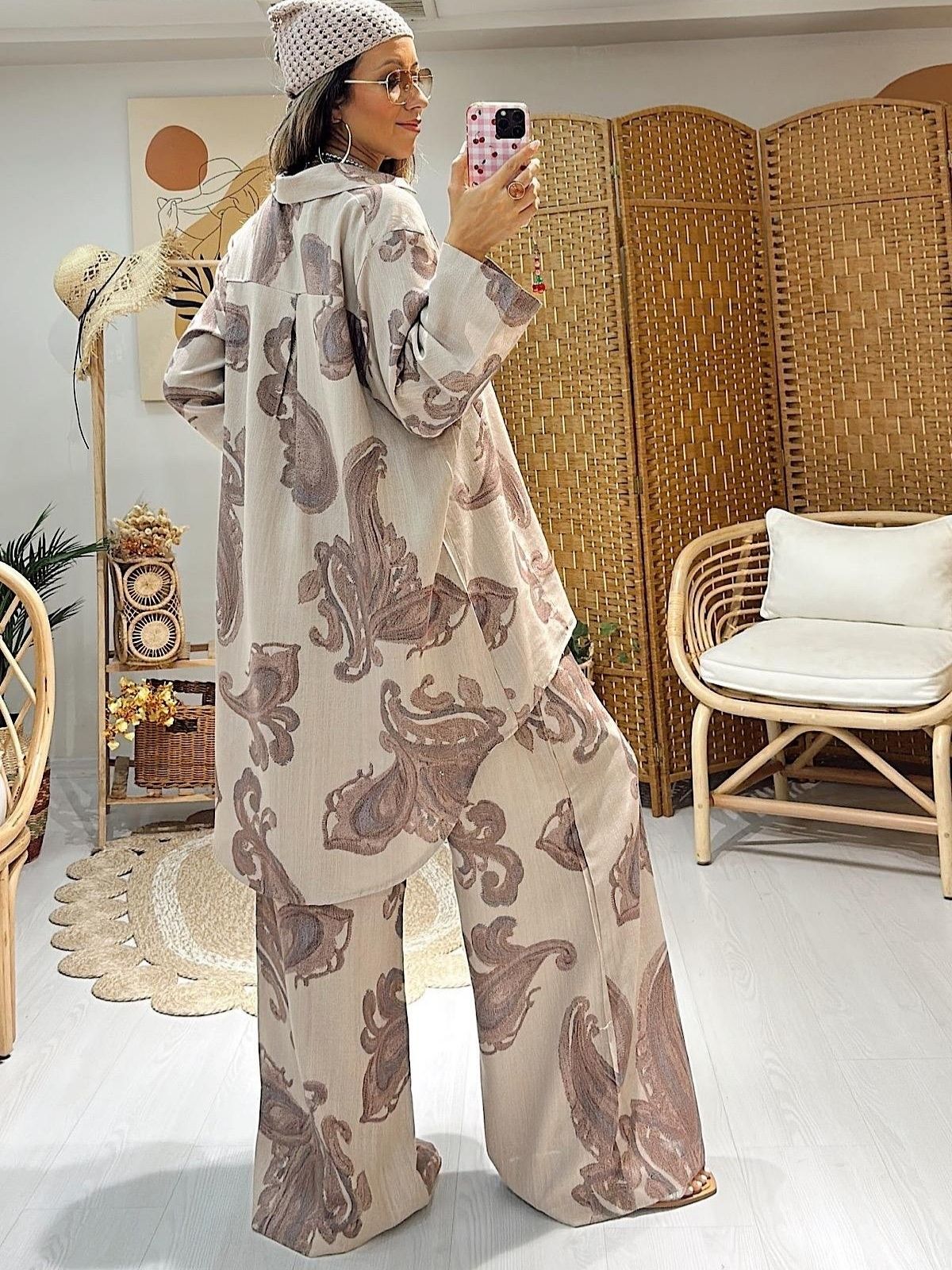 Keten Şal Desen Bol Paça İkili Takım TK100222 – Bej
