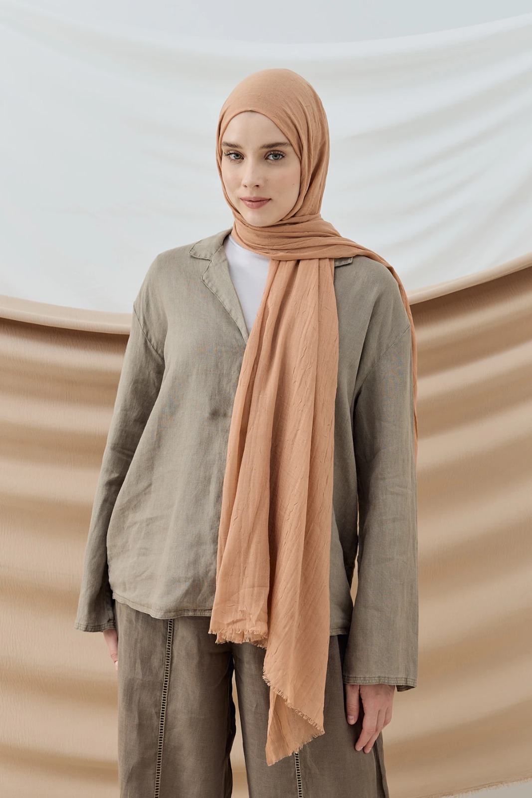 Organic Scarfs Bambu Kraş Şal Modeli -Kum beji
