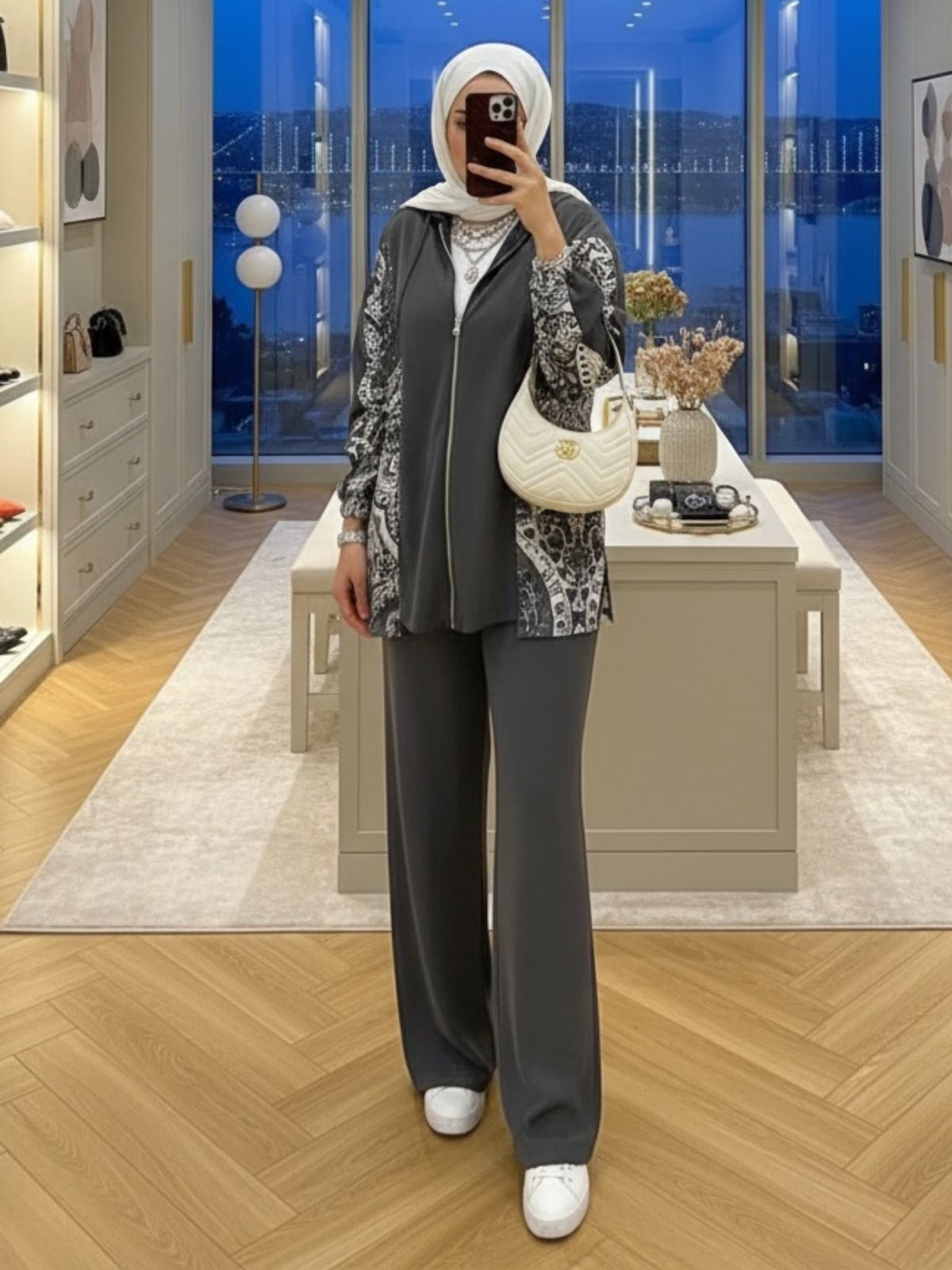 Hem günlük şıklıkta hem özel davetlerde rahatlıkla tercih edilebilecek bu takım, modern zarafeti geleneksel dokunuşlarla buluşturuyor.