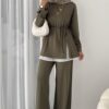 Premium Oysho Düğmeli İkili Takım TK2968 – Haki