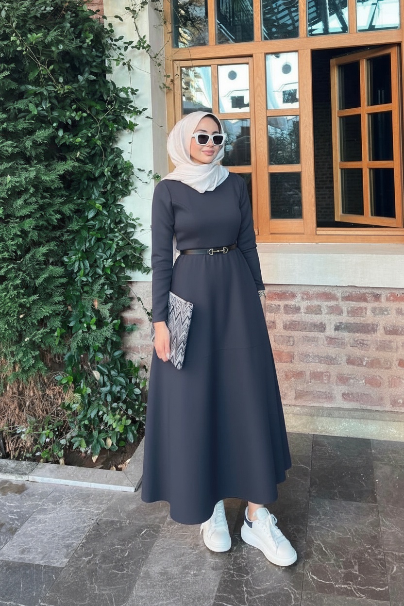 • Üst Parça: Yumuşak ve rahat kumaştan üretilmiş, omuzlardan alta kadar parlak taşlarla bezenmiş salaş kesim sweatshirt. (Alt kısımda pilili/katmanlı etek detayı ile hareketlilik sağlanmıştır.)