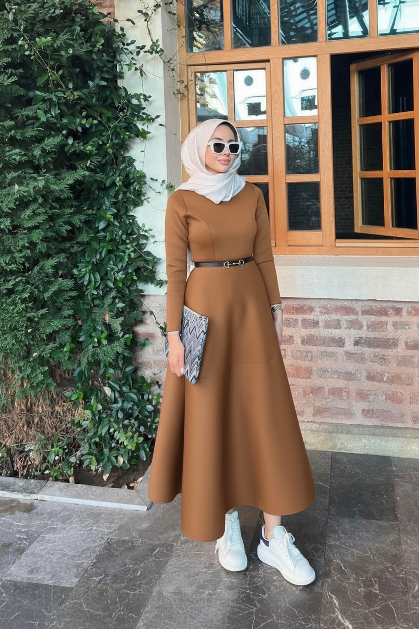 • Üst Parça: Yumuşak ve rahat kumaştan üretilmiş, omuzlardan alta kadar parlak taşlarla bezenmiş salaş kesim sweatshirt. (Alt kısımda pilili/katmanlı etek detayı ile hareketlilik sağlanmıştır.)