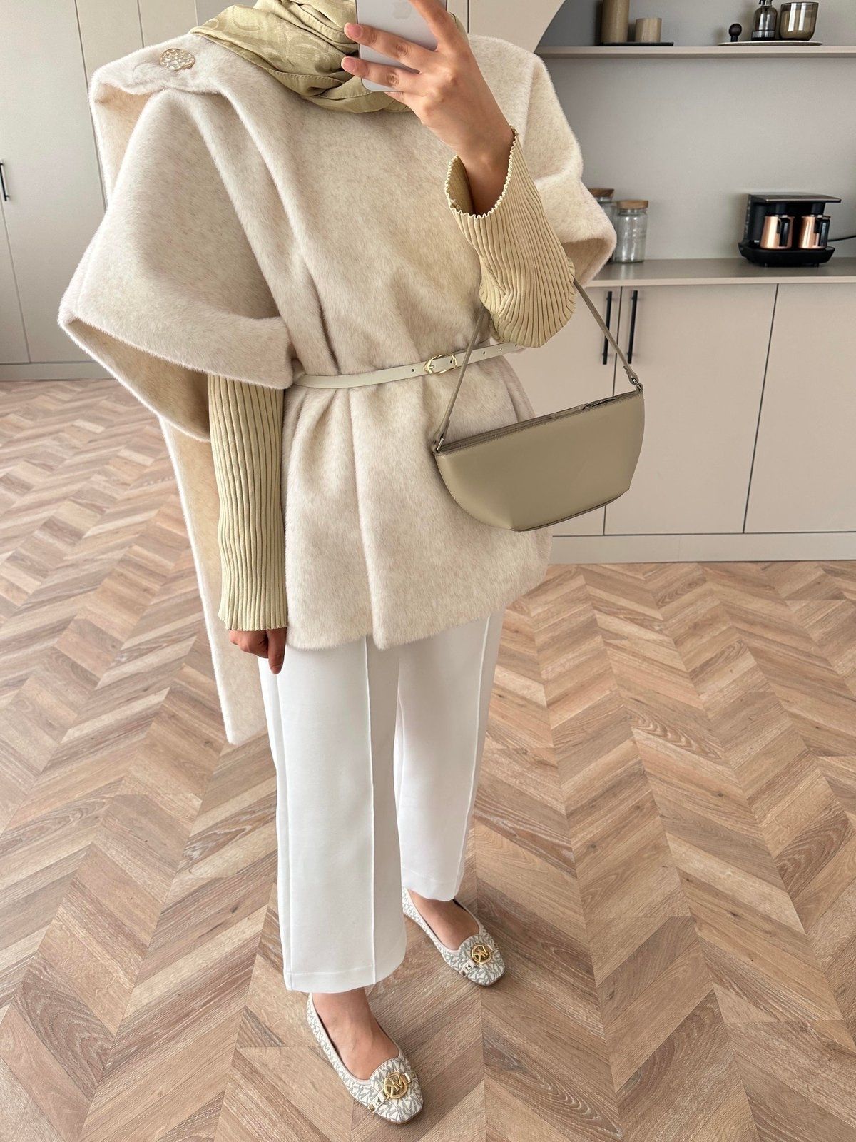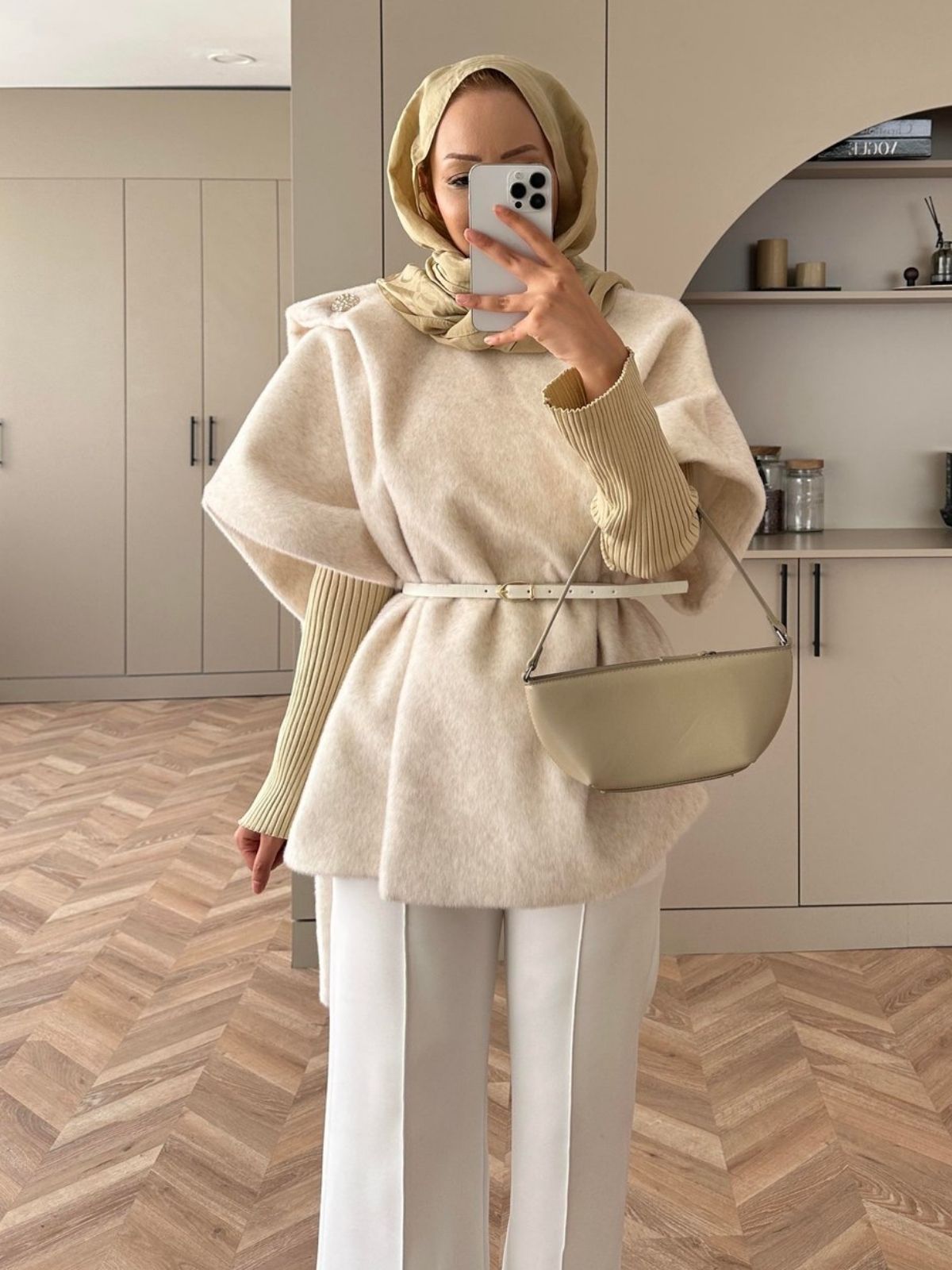 Şal Detaylı Kaban (Kemer Hediyeli) DŞ100433 – Ekru