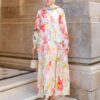 Pastel tonların huzurlu uyumuyla tasarlanan bu elbise, pembe, turuncu ve sarı çiçek desenleriyle yaz mevsiminin zarif enerjisini yansıtıyor. Hafif kumaşı ve dökümlü kesimiyle gün boyu rahatlık sağlarken, romantik çiçek dokusu sayesinde hem günlük hem de özel kombinlerde şık bir seçenek sunuyor. Nötr renkli şallar ve altın detaylı aksesuarlarla kolayca tamamlanabilir.